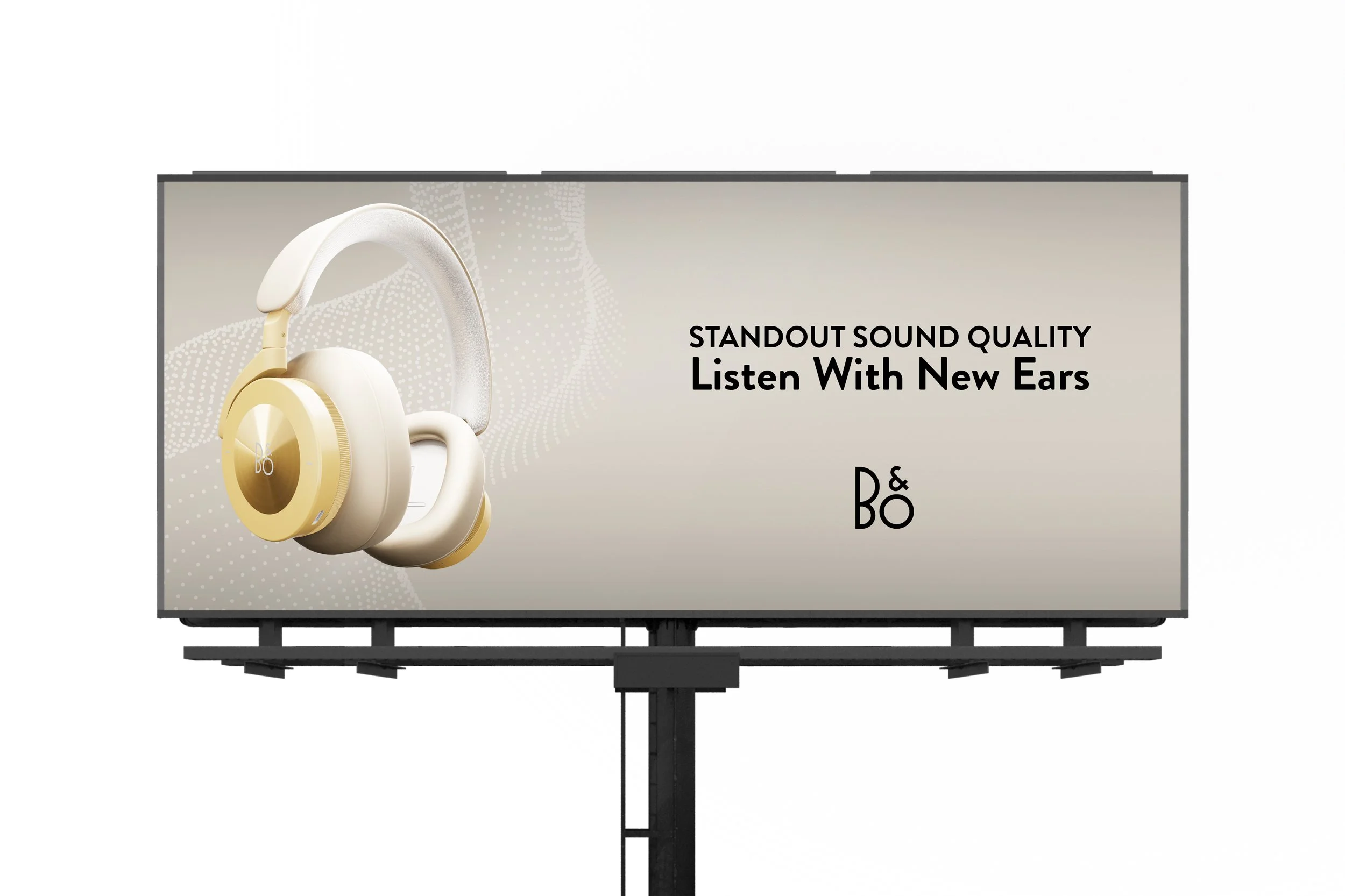 To further emphasize the product's features and superior listening experience, we created a series of videos and social media posts showcasing the headphones flowing from all angles to make their design the visual standout. The high-quality videos and photos were targeted at tech enthusiasts and audiophiles to generate buzz and interest in the product. We also created out-of-home billboards to showcase the Beoplay H95 Headphones' design and technology in high-traffic areas. The billboards featured high-quality images of the headphones and emphasized their superior sound quality and noise-cancelling technology various lifestyle settings. Together, these campaign elements created a cohesive and effective campaign that generated excitement and buzz around the product launch.